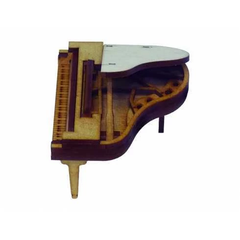 Miniatura em MDF cru recortada a laser. Ideal para montagem de cenários e decoração. Tamanho aproximado: 8x7,5x5cm - 3mm de espessura. Obs.1: Abre o tampo das cordas e do teclado, abre o espaço das partituras e acompanha banco. Obs.2: A peça já vem montada.