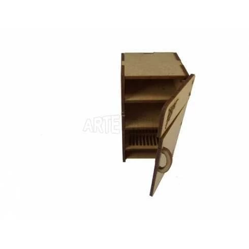 Miniatura em MDF cru recortada a laser. Ideal para montagem de cenários e decoração. Tamanho aproximado: 5,5x5,5x12cm - 3mm de espessura. Obs.1: Abrem duas portas.Obs.2: A peça já vem montada.