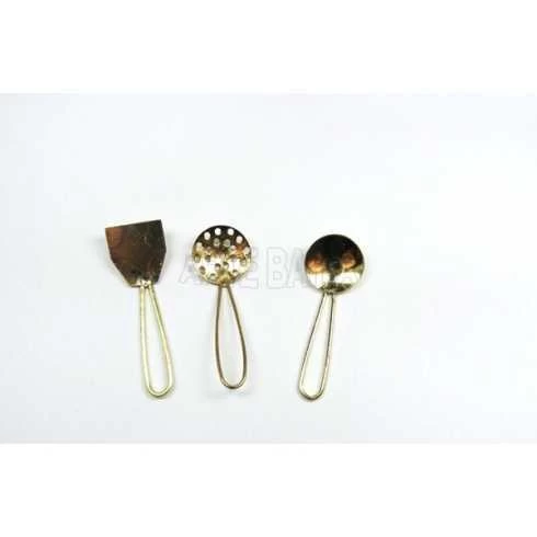 Miniatura de ferro - Escumadeira/Concha/Espátula Pq - Dourado - 3 unid.