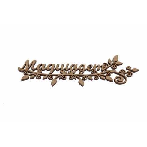 Aplique em MDF - Palavra - Maquiagem com Flores - 12,5x3cm