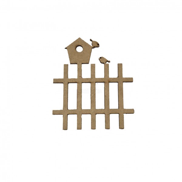 Aplique em MDF - Cerca com Casa de Pássarinhos