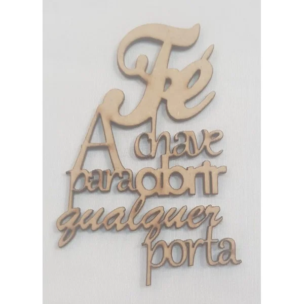 Aplique em MDF - Frase: Fé a chave para abrir qualquer porta