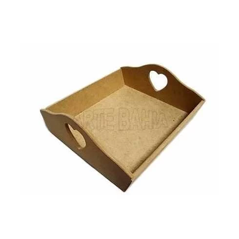 Peça em MDF cru de 9mm. Medida Externa: 17cm x 18cm x 6,5cm. Medida Interna: 15,5cm x 17cm x 4,5cm. Com abertura lateral para as mãos em formato de coração.