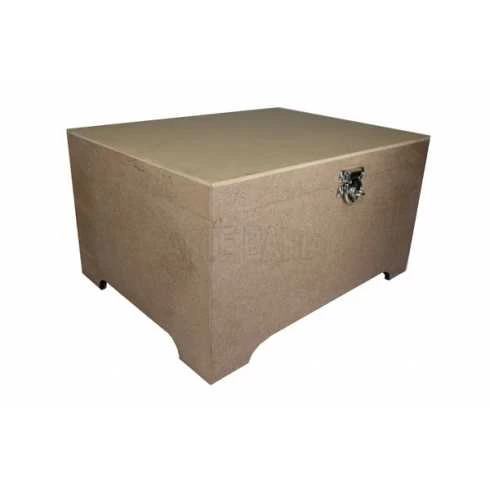 Peça em MDF cru de 6mm. Medida Externa: 26cm x 34cm x 18cm. Medida Interna: 24,5cm x 32,5cm x 12,5cm. Tampa com Dobradiça