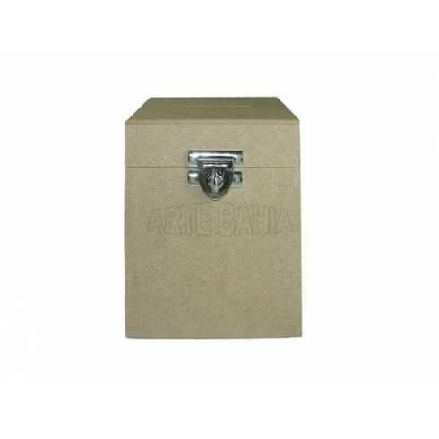Peça em MDF cru de 6mm. Medida Externa: 15,5cm x 15,5cm x 18,5cm. Medida Interna: 14cm x 14cm x 14,5cm. Afunilando até 12cm x 12cm. Tampa com Dobradiça e Fecho para cadeado. Abertura na tampa para passar o voto.