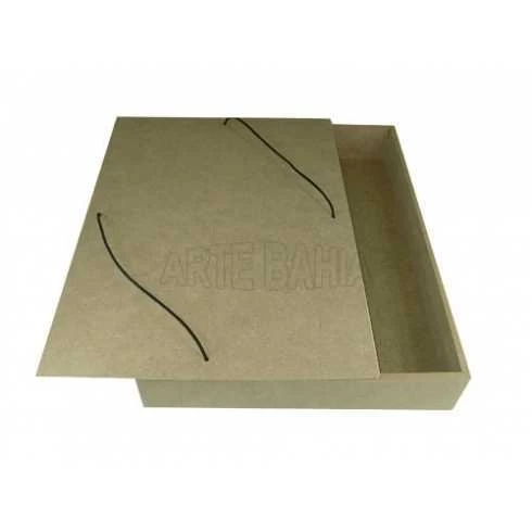 Pasta em MDF Crú de 6mm. Medida Externa: 36,5cm x 26cm x5,8cm. Medida Interna:35x24,5x5cm. Tampa de encaixe com elástico.