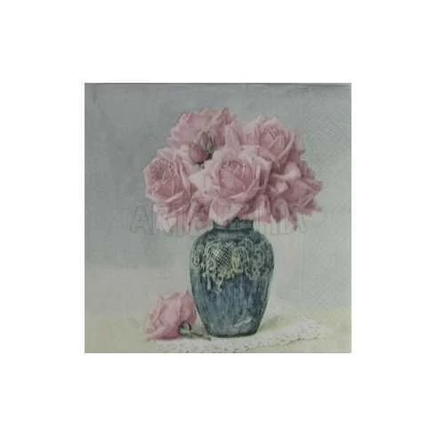 Guardanapo Vaso Cinza C/ Flores Rosas (746)
