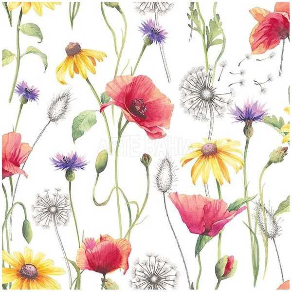 Guardanapo Prado de Papoulas Coloridas no Fundo Branco (373)