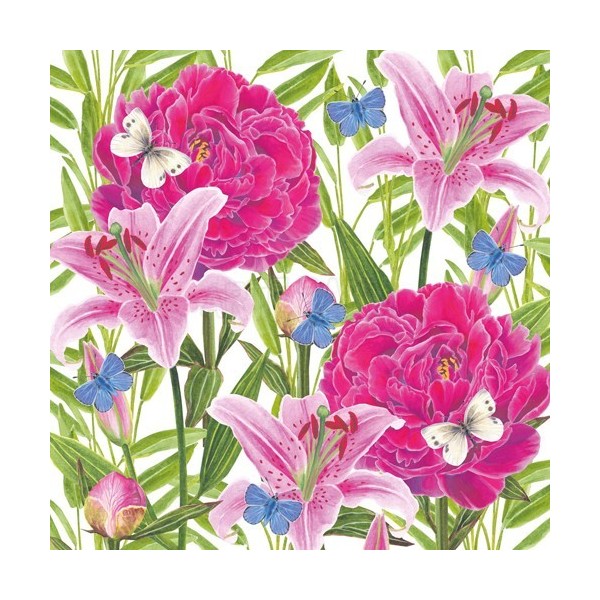 Guardanapo Flores e Lírio em Tons de Rosa Fundo Branco (246)