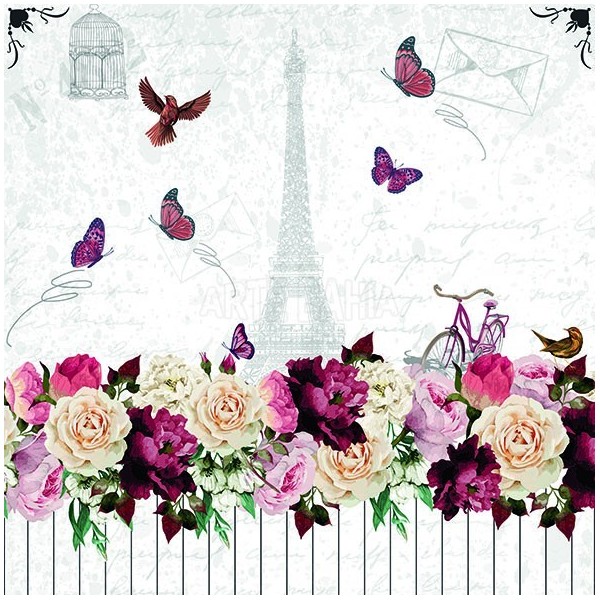 Guardanapo Flores com Torre Paris Romantico (998)