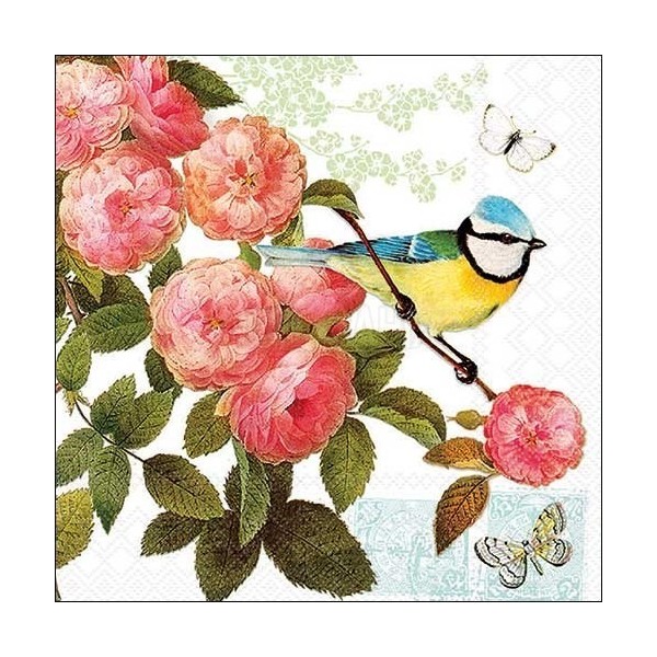 Guardanapo Pássaro no Galho com Flores no Fundo Branco (206)