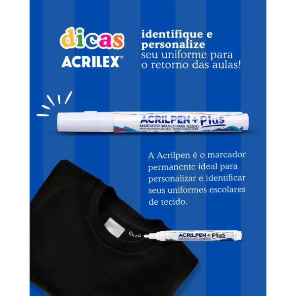 - Acrilpen + Plus marcador branco para pintar e marcar tecidos permanentemente