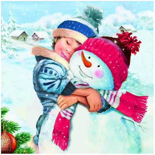 Guardanapo Menino Abrançando Boneco de Neve (475)