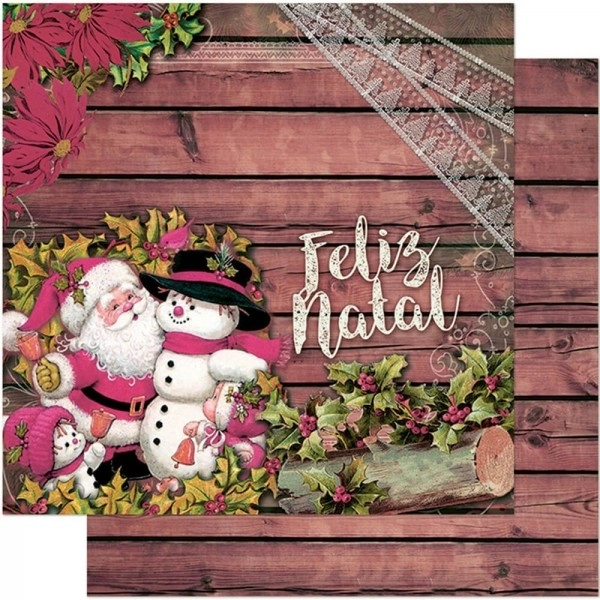 Folha para Scrapbook Dupla Face SDN-102 - Papai Noel e Boneco de Neve