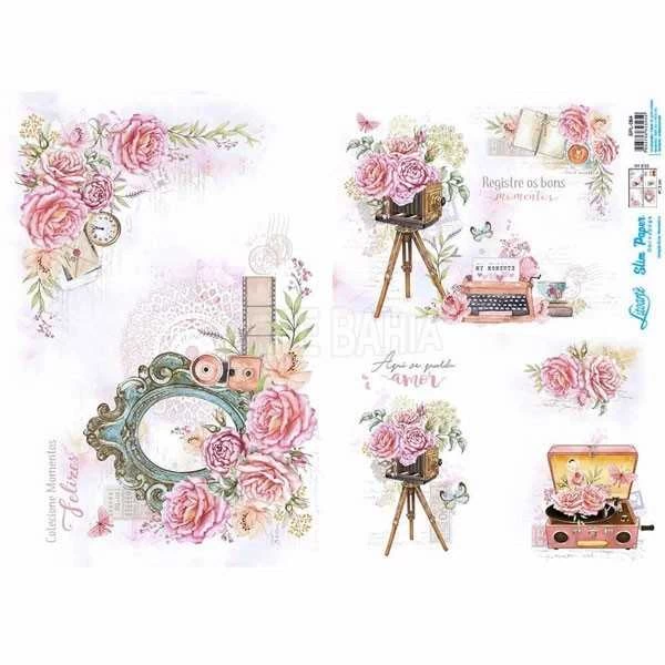 Papel para Decoupage Slim Paper - SPL064 - Máquina e Flores