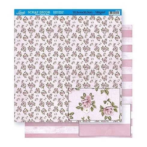 Folha para Scrapbook Dupla Face - SD0381 - Flores Pequenas no Fundo Rosa