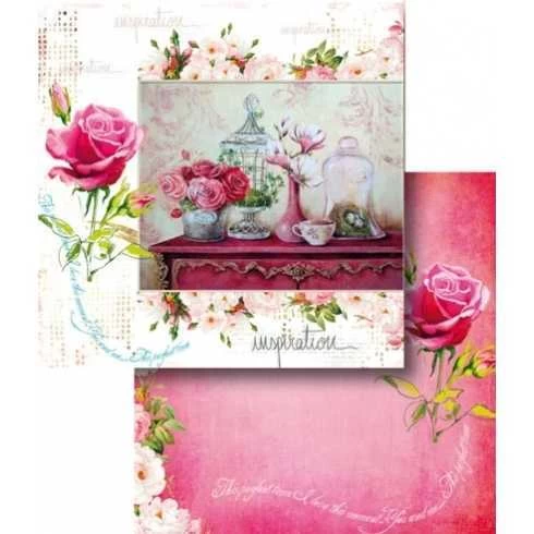 Folha para Scrapbook Dupla Face - LSCD432 - Arranjo de Flores Vidro e Gaiola