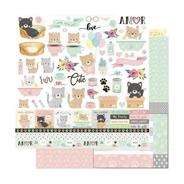 Folha para Scrapbook Dupla Face - SD1172 - Gatinhos