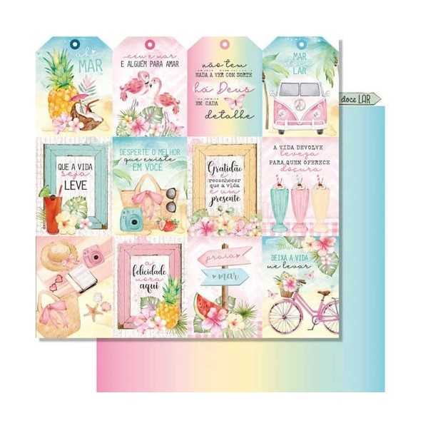 Folha para Scrapbook Dupla Face - SD1223 - Placas Praia e Mar com Dizeres