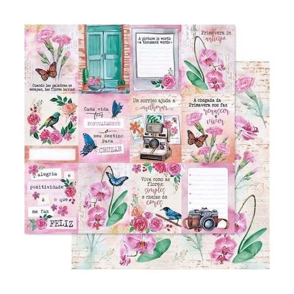 Folha para Scrapbook Dupla Face - SD1217 - Dizeres Flores e Borboletas