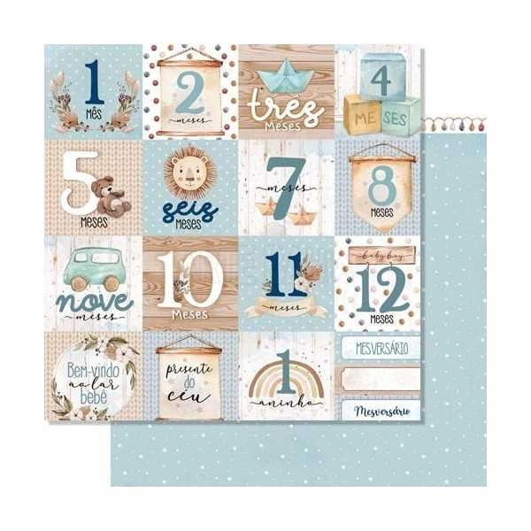 Folha para Scrapbook Dupla Face - SD1213 - Mêsversário Menino
