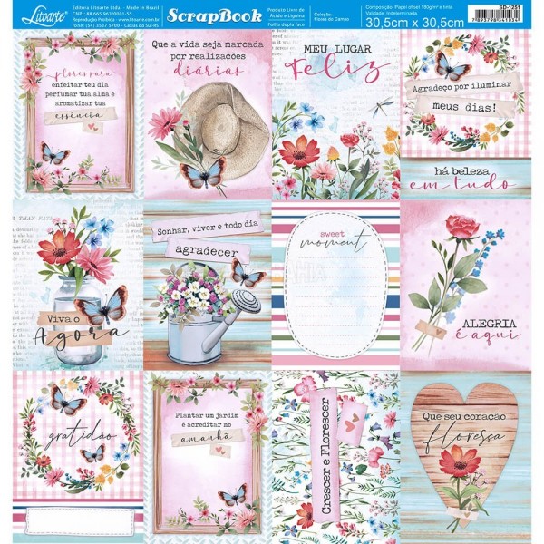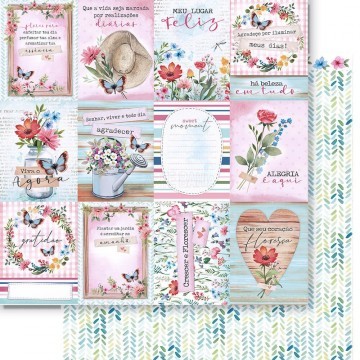 Folha para Scrapbook Dupla Face - SD1251 - Placas c/ Dizeres e Flores