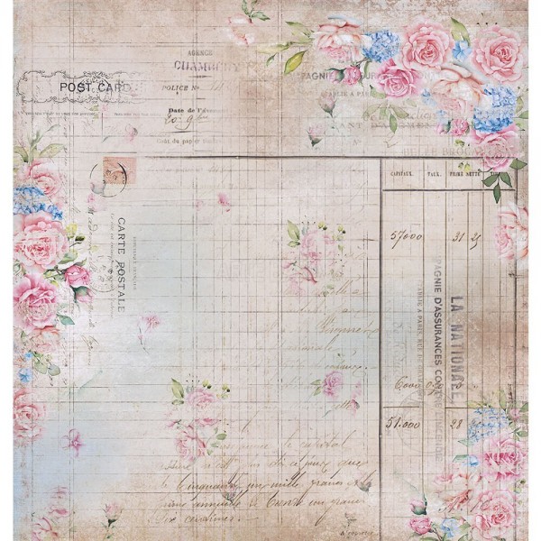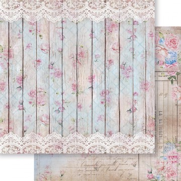 Folha para Scrapbook Dupla Face - SD1273 - Rosas na Madeira c/ Renda