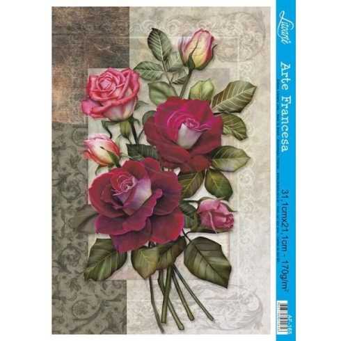 Papel para Arte Francesa 21x31cm - AF165 - Buquê de Rosas
