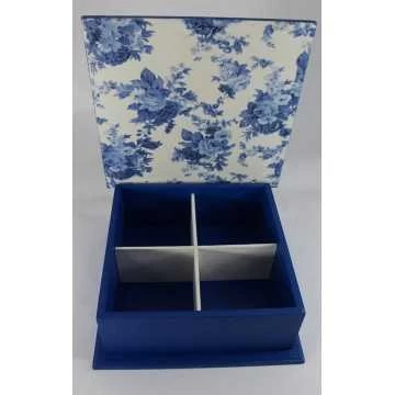 Medidas da Caixa: 19cm x 19cm x 7,5cm (ref:2000000007861). 4 Divisões. Categoria:Madeira MDF / Caixa de Chá