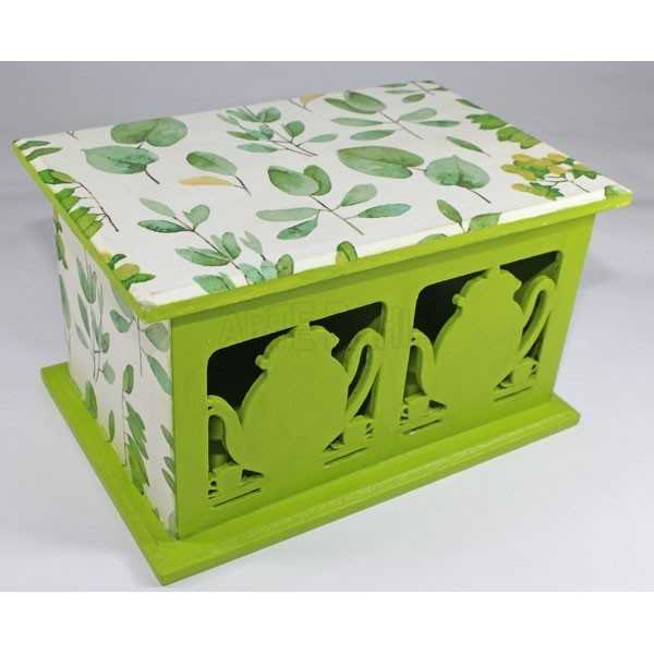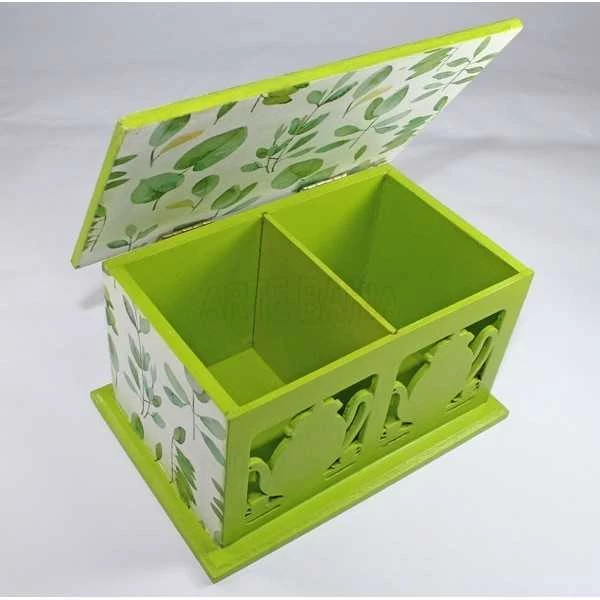 Caixa de Chá 2 Divisões - Verde com Folhas