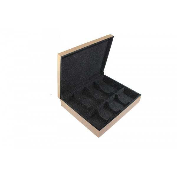 Caixa Flocada em preto (forrada com pó de camurça) 4 divisões de 7x14x5cm e 4 divisões de 7x9x5cm.