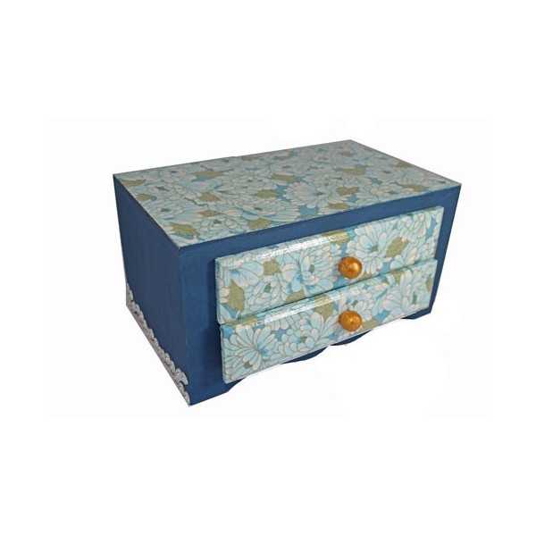 Caixa de Biju - Azul Escuro com Margaridas - 2 Gavetas
