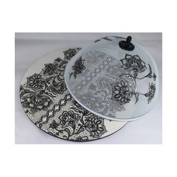 Porta Bolo Rendas Preto/Branco - Base 35cm