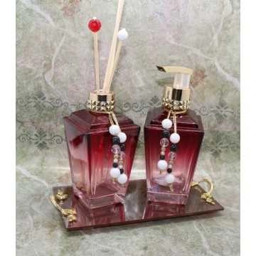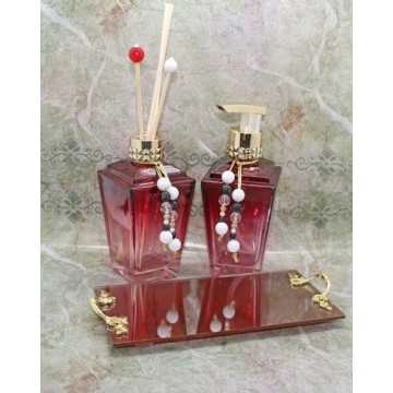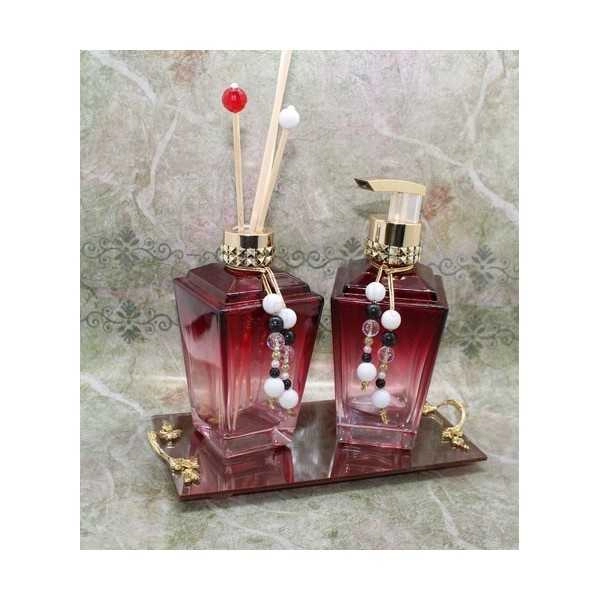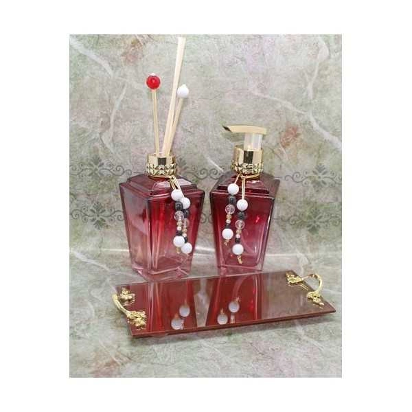 - 1 difusor Trapézio Vermelho de 250ml e 1 Saboneteira Vermelha de 250ml com Válvula Ouro