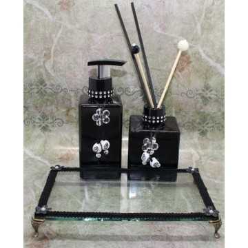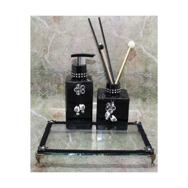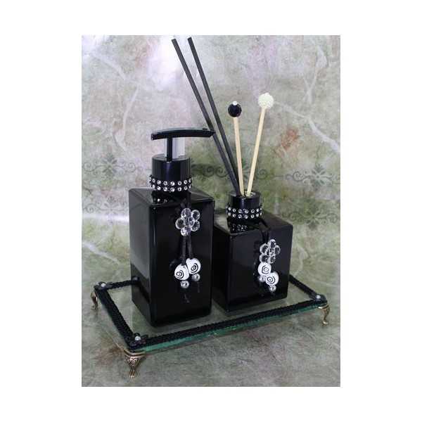 - 1 difusor Cube Preto de 250ml e 1 Saboneteira Cube Preta de 250ml com Válvula Prata