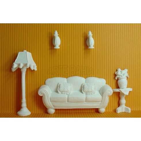 Medidas: Sofá: 2x11x5cm / Abajur:1,5x4x10cm.