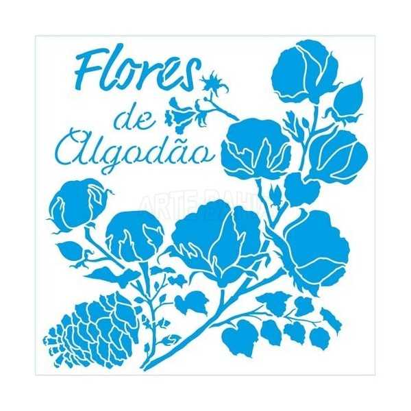 Stencil de Acetato Litoarte 20x20cm - STXX210 - Flores de Algodão