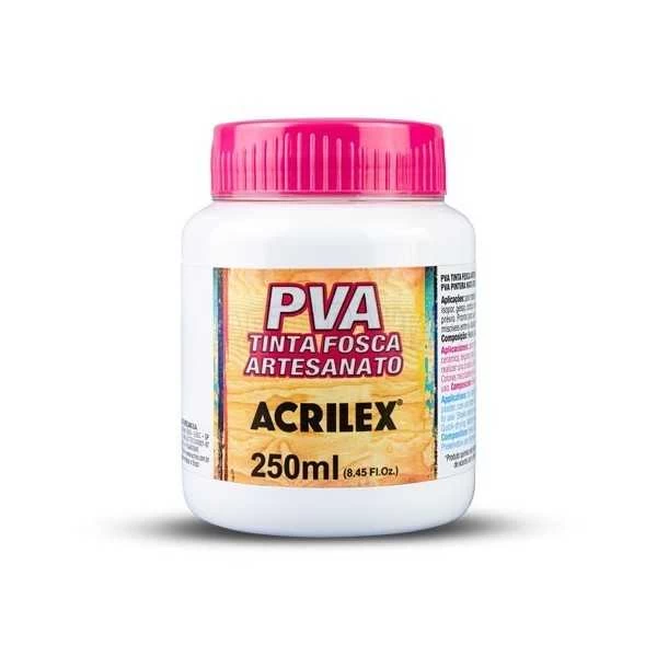 Marca Acrilex. A base de Látex P.V.A. Secagem rápida. Acabamento fosco. Ideal para trabalhos artesanais sobre madeira, gesso, MDF, cerâmica, cortiça, isopor, papel, palha e PET (preparado antes com Primer Acrilex). Pode ser aplicada com pincel, esponja ou rolinho de espuma. Diluente em água.